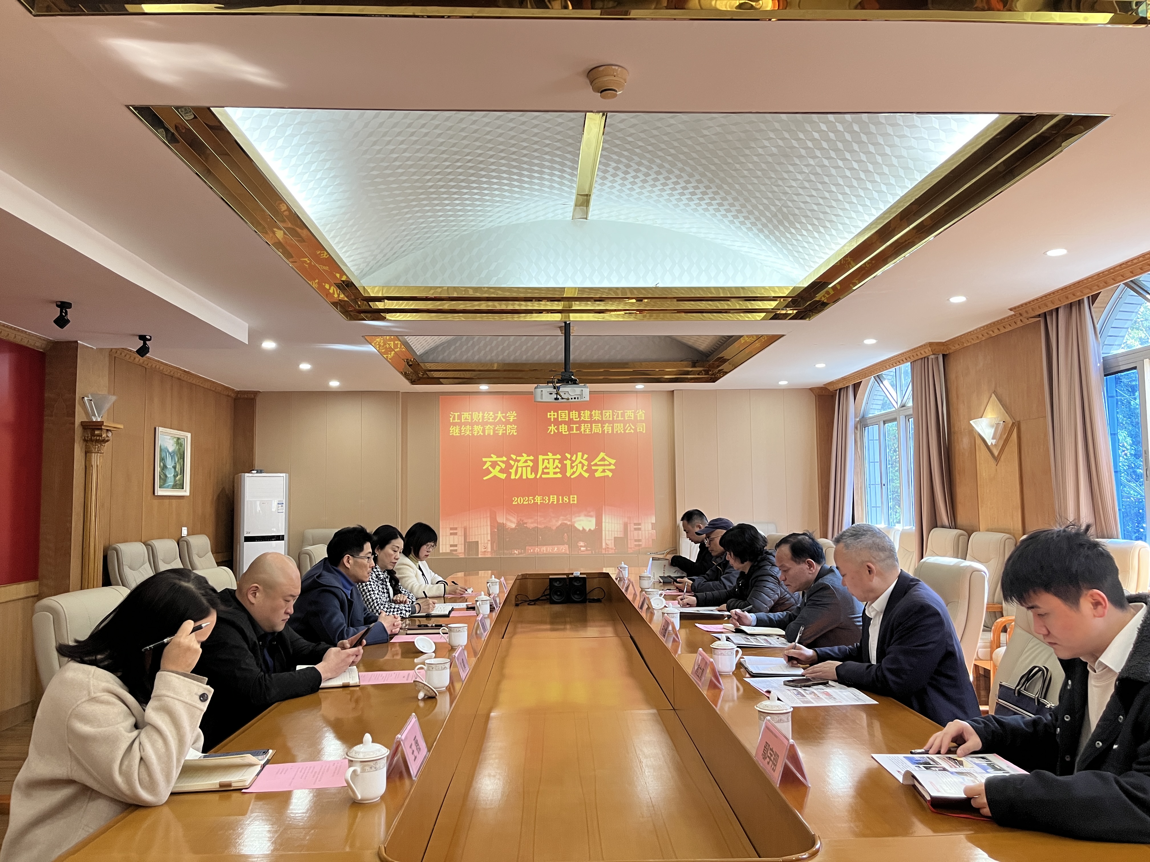 2025年3月18日,中国电建集团江西省水电工程局有限公司培训中心主任邓金锁一行六人来我院开展交流座谈,学院院长宁亮、副院长兰芳及相关部门负责人参加了座谈会。座谈会由宁亮主持。